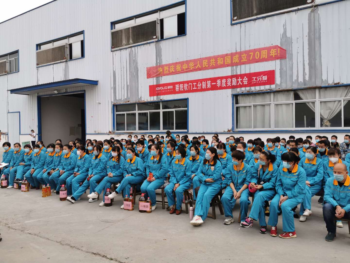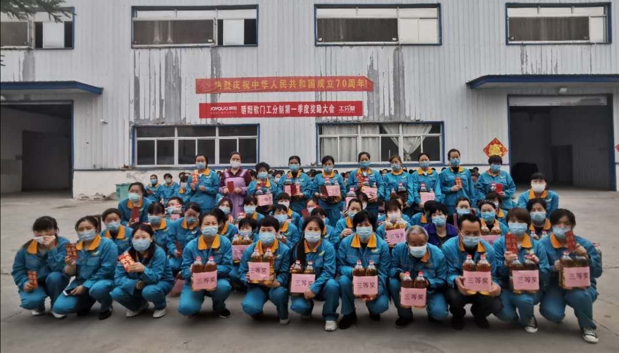 2020年4月16日17点30分骄阳磁性软纱门举办了2020年第一季度工分制奖励大会