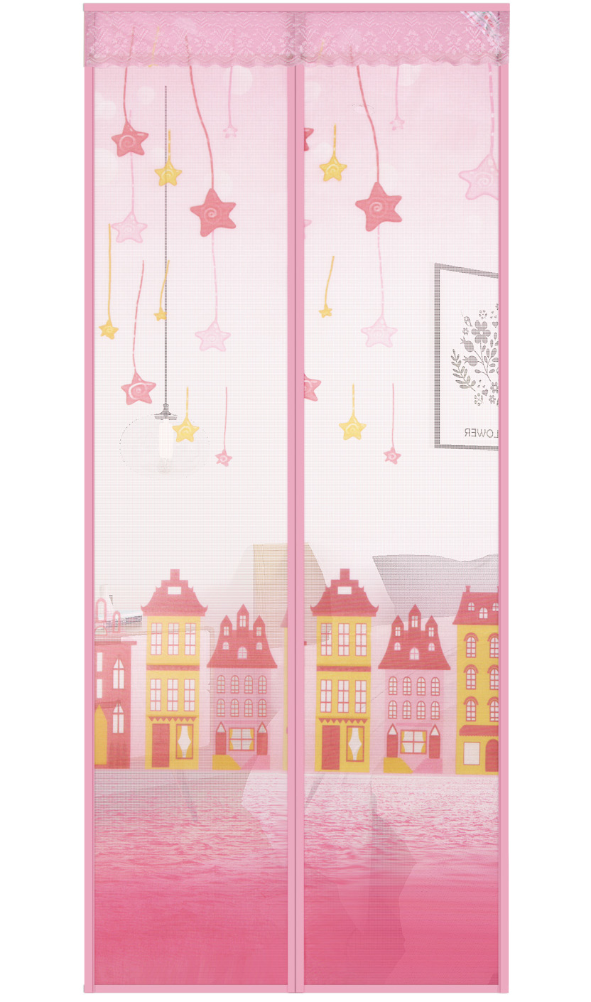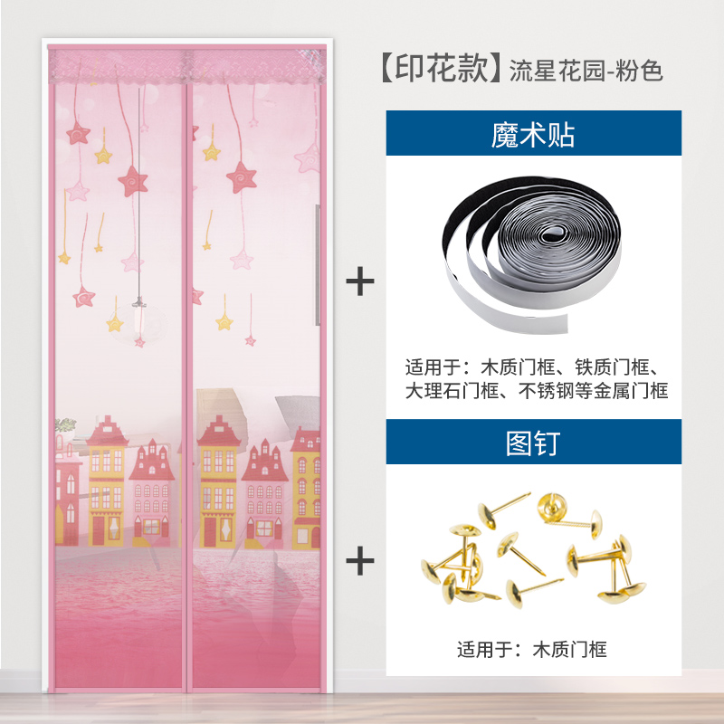 流星花园磁性软纱门帘粉色是一款用纱和磁条的结合而成,用铁钉或者图钉钉在木门上,用来防蚊蝇进入屋里的一种纱门。