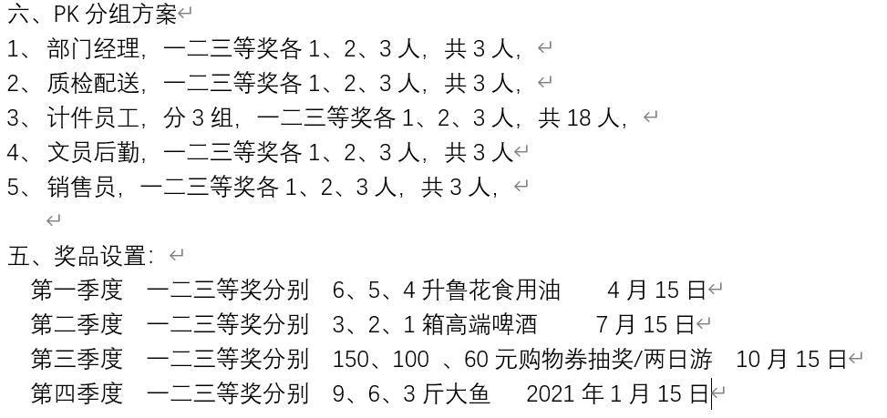 此次活动按照职能、部门共分为6组,每组设置一等奖1名、二等奖2名、三等奖3名,共36人。外检组组长根据工分制系统每组每位员工的分值,由高到低进行评分,选出每组的一二三等奖,奖品是6L、5L、4L的食用油,分别对应一二三等奖,公司之所以选择食用油做奖品,是因为每年的这个季节都是公司产销旺季,几乎是全厂总动员忙加班、赶生产,用食用油来为员工加油,在精神上及物质上为他们呐喊鼓劲。产销旺季加班忙,不忘初心抓质量,在平时工作中发现质量问题及提出好建议的员工,给予加B分并兑现B分红包的奖励。