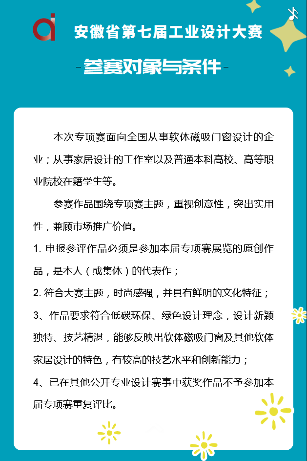 安徽省第七届工业设计大赛“骄阳杯”软体磁吸门窗及家居设计专项赛征集公告